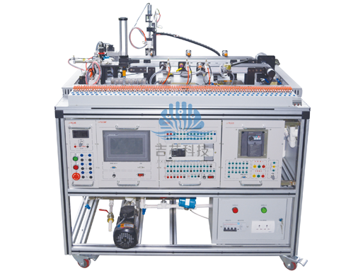 该装置配置了气动装置、传感器气动机械手装置、上料器、送料传动和分拣装置热处理加热炉装置、小车运动装置、水箱液位装置水泵执行装置、液位、流量传感器装置触摸屏模块(可选配)可编程控制器(PLC)(可选配)、变频器装置(可选配)等实训机构。整个系统为模块化结构提烘开放式实训平台,实训横块可根据不同的实训要求进行组合:同时学校还可以根据教学需要,配置不同品牌的( PLC)模块和变频器模块以及触搓屏模块,也可以增加其它实训模块。系统主要分为液位仪表过程控制系统、工业热处理炉控制系统、机电一体化控制系统(包台机械手和分拣系统)三大系统组成。