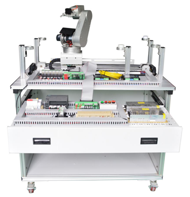 PLC is adopted to collect sensor signals and control the actions of stepper motor, dc motor and air claw, so as to realize system linkage and reproduce the handling and position positioning process of manipulator in industrial automatic production line.