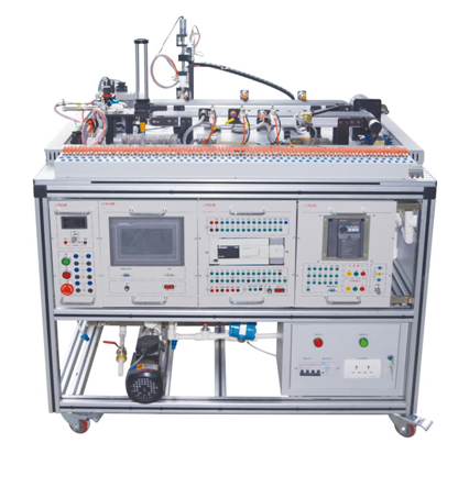 The device is equipped with pneumatic devices, sensors, pneumatic manipulator device, feeder, feeding and sorting device heat treatment furnace device, car movement device, water level device pump device, liquid level, flow sensor device touch screen module (optional) programmable controller (PLC) (optional), frequency converter device (optional), and other training institutions. The whole system is a modular structure to promote open training platform, training blocks can be combined according to different training requirements: at the same time, the school can also according to the teaching needs, configuration of different brands (PLC) module and inverter module and touch rub screen module, can also add other training modules. The system is mainly composed of three major systems: liquid level instrument process control system, industrial heat treatment furnace control system, mechatronic control system (packing station manipulator and sorting system).